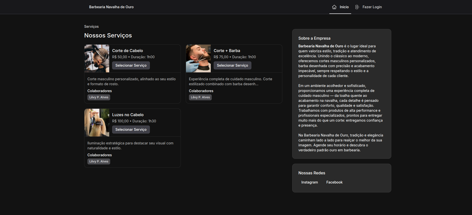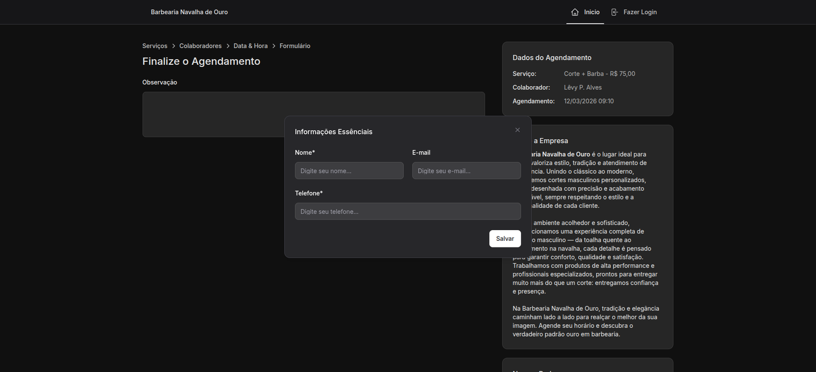 Uma página para o seu negócio, onde toda atenção do seu cliente estara concentrada nos serviços do seu negócio.Controle de Agendamento